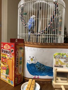 おまけ 我が家のセキセイインコのピーティーが1歳になりました 😀