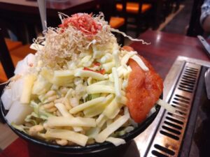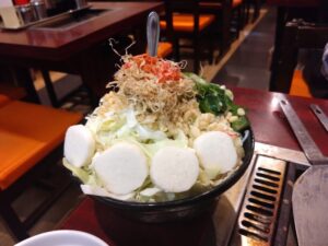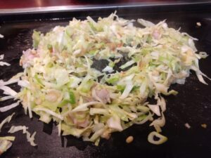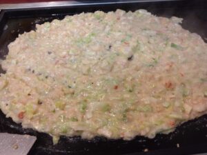 歩き疲れて、帰りはお楽しみの月島のもんじゃ焼きです。