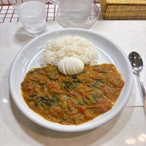 野菜カレーにゆで卵トッピング
